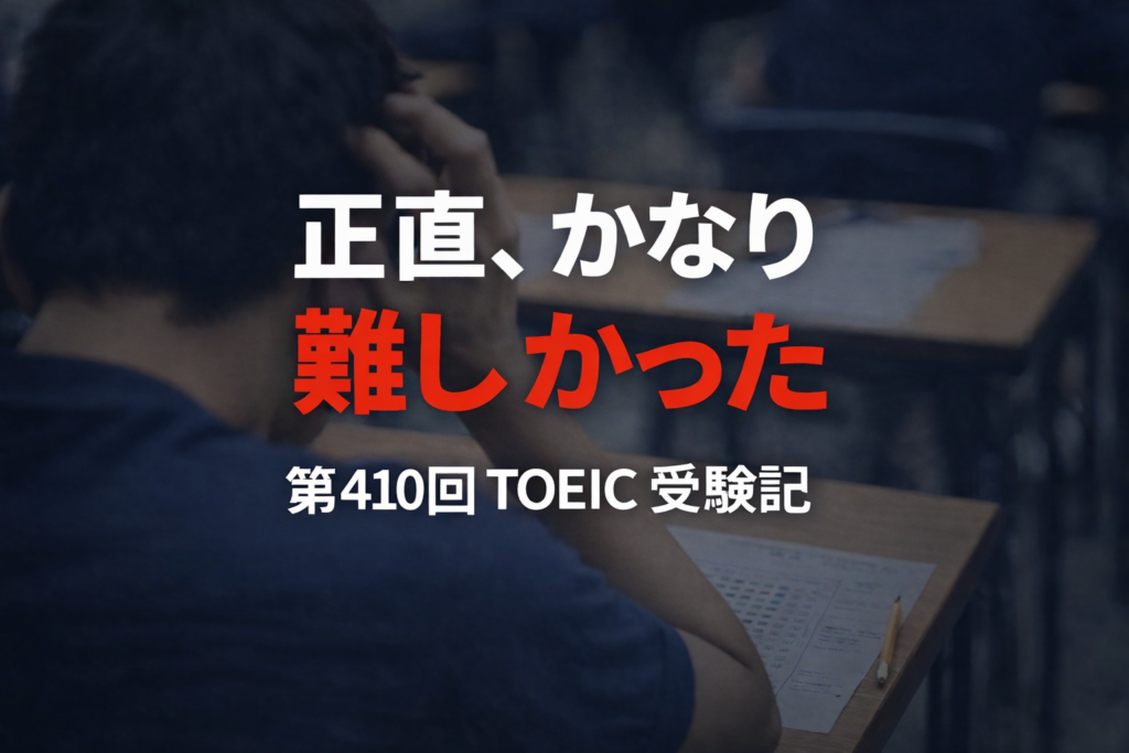 第410回TOEIC公開テスト午前の部を受験してきました。率直な感想として、今回はかなり難しかったという印象が強く残っています。 加えて今回は、TOEICを受験するのが約4年半ぶりでした。問題形式自体は理解しているつもりでも、本番特有のスピード感や緊張... -